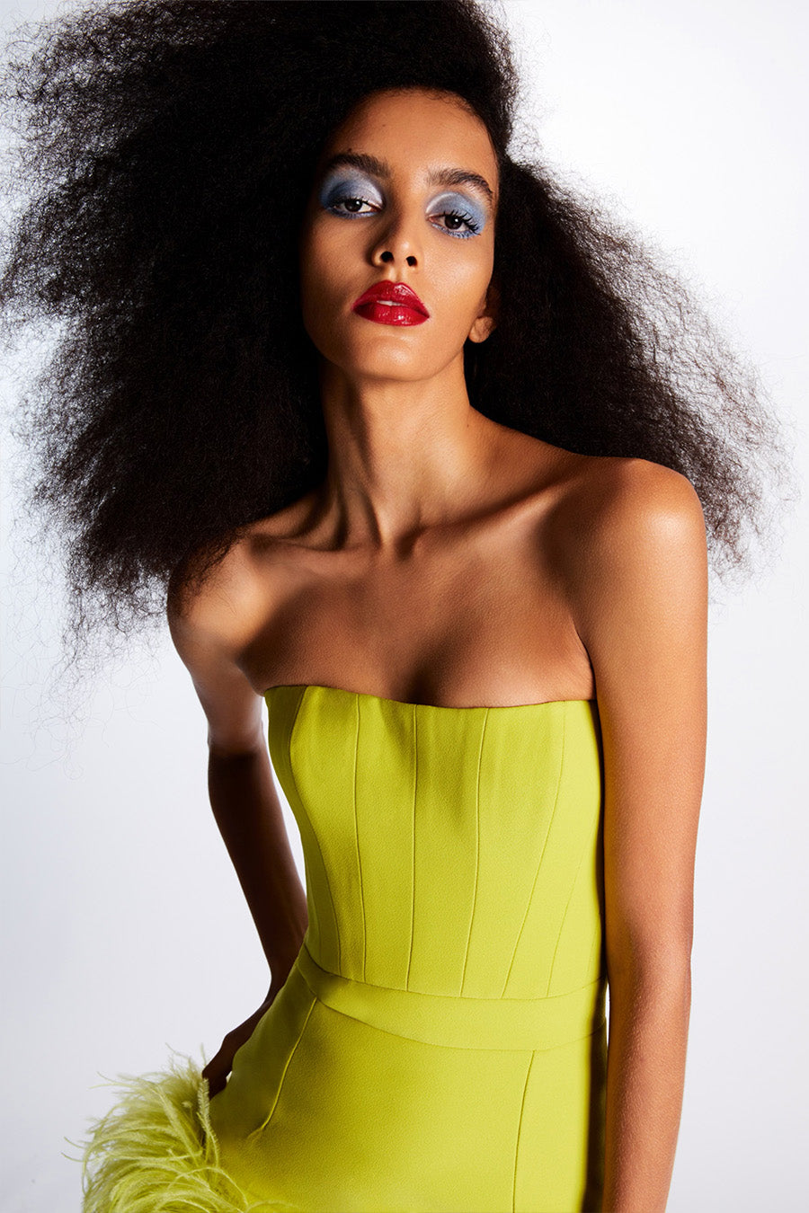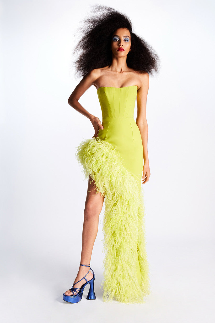 - Strapless, asymmetrical cut