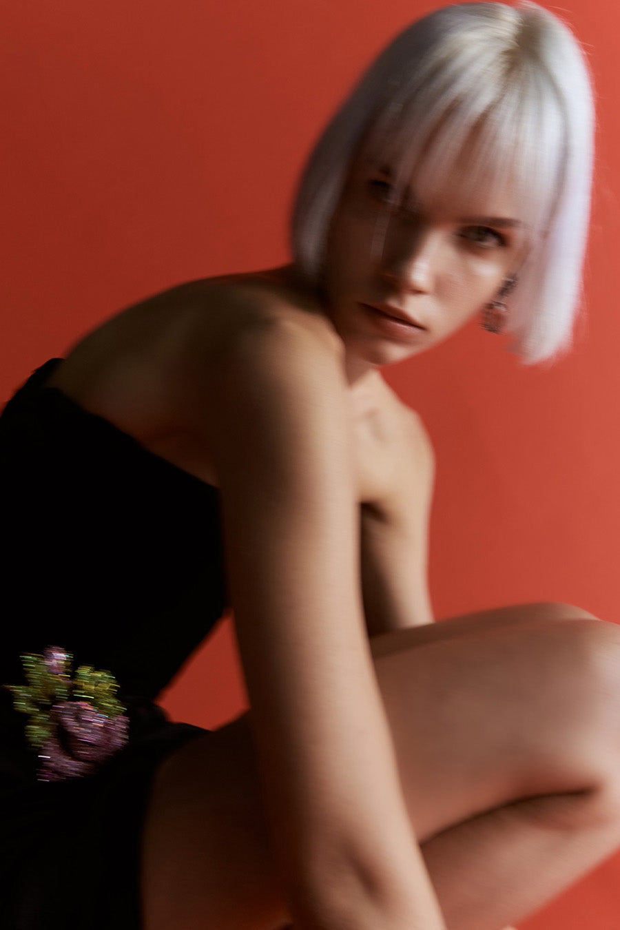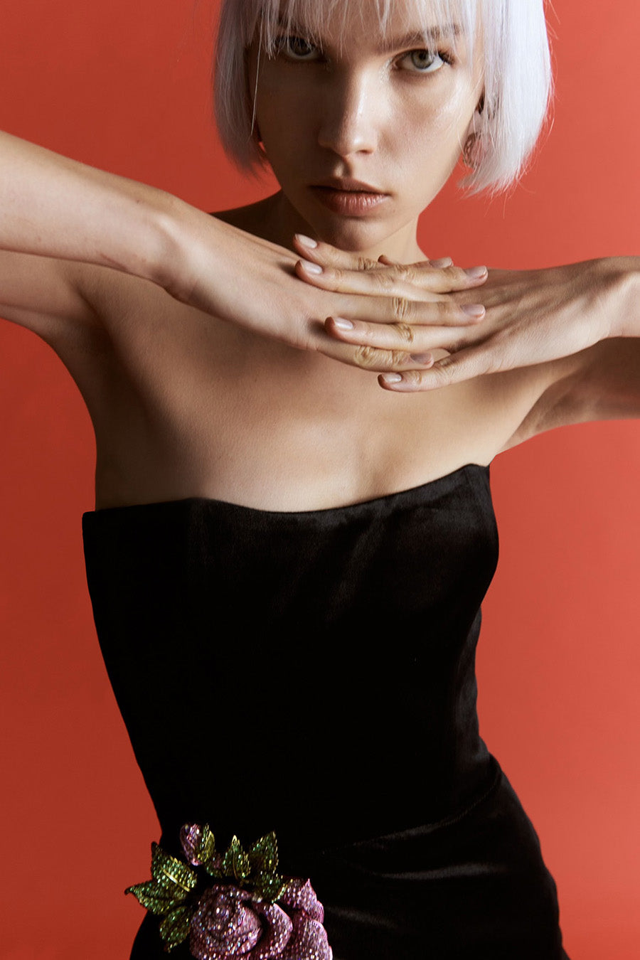 Avoid excessive steaming to avoid damaging the shape of the dress. Keep away from water and heat. When you give it to dry cleaning, make sure it is not cleaned with water. Since it is interfacing, it should not be folded and the front cuff should not be attached to the clip hanger.