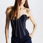 - Dark washed denim fabric