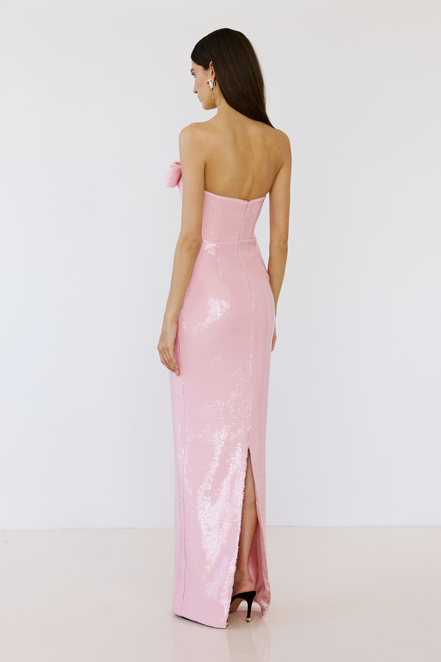 - Yüksek parlaklık ve ışıltılı bir görünüm için tamamı pembe payet kaplı yüzey