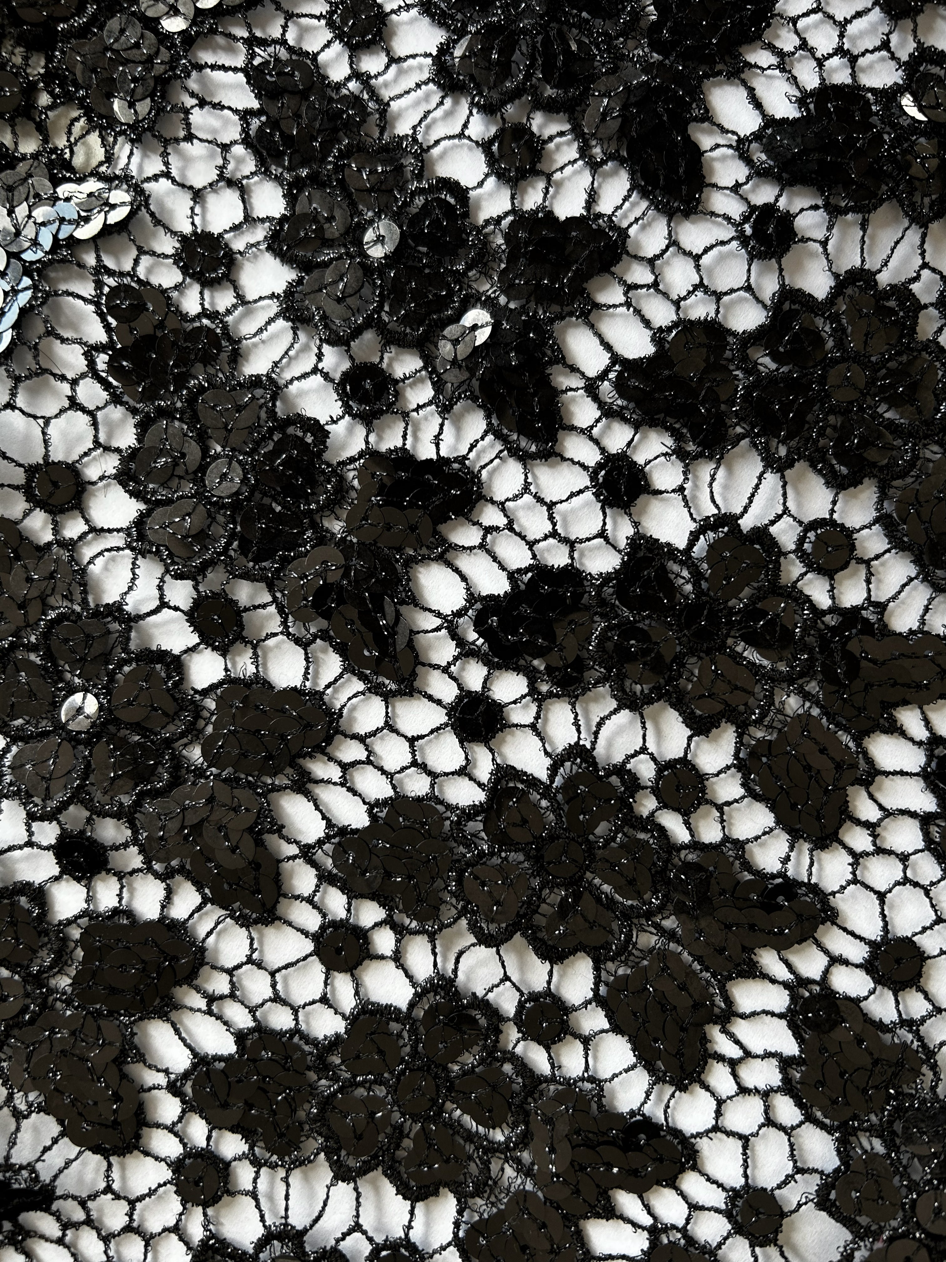 - Siyah payetli dantel kumaş
