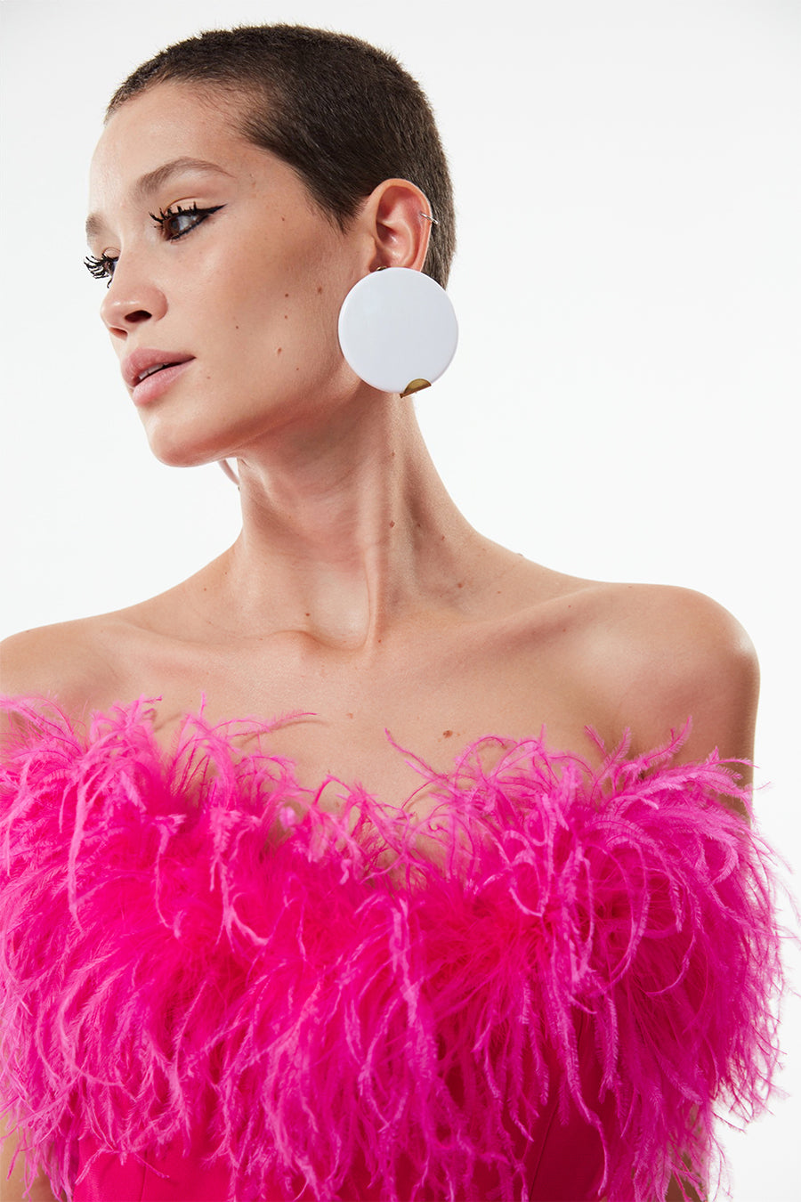 Kullanılan tüm otrişler %100 deve kuşu tüyü boyanarak üretilmektedir. Sürdürülebilir üretim taahhüdü ve faaliyetleri çerçevesinde üretilerek sertifikalı çiftliklerden temin edilmektedir. Serin ve kuru bir ortamda muhafaza edin. Renk vermemesi için su ve nemden uzak tutun. Sentetik olmadığı için belli miktarda dökülme yapması normaldir. Otrişler elbiseye elle dikilmiştir. Kuru temizlemeye vermeden önce otrişlerin çıkarılıp, temizlendikten sonra tekrar dikilmesi gerekmektedir.