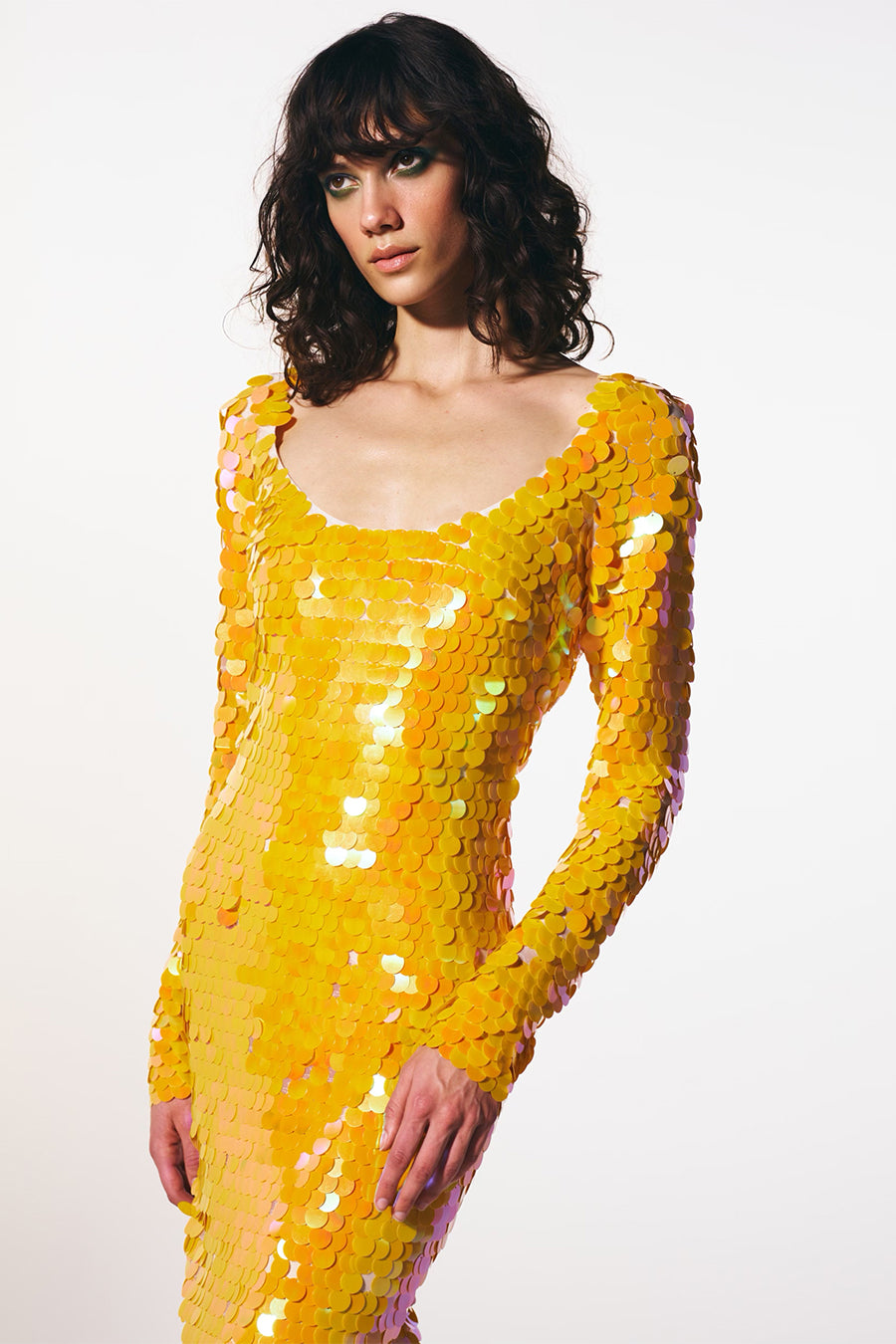 - Turuncu payetli kumaş