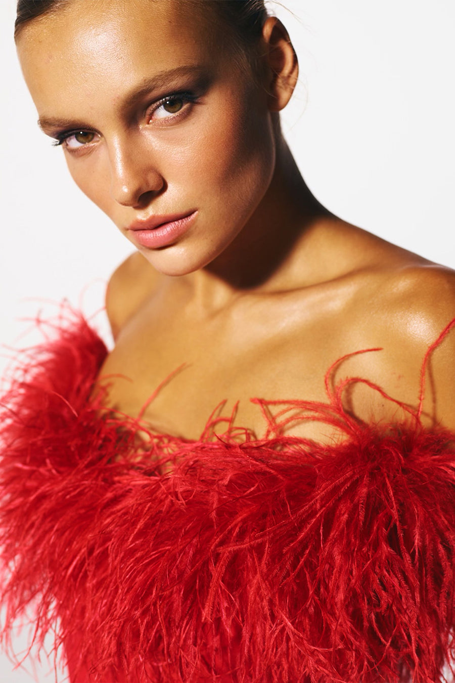 Kullanılan tüm otrişler %100 deve kuşu tüyü boyanarak üretilmektedir. Sürdürülebilir üretim taahhüdü ve faaliyetleri çerçevesinde üretilerek sertifikalı çiftliklerden temin edilmektedir.