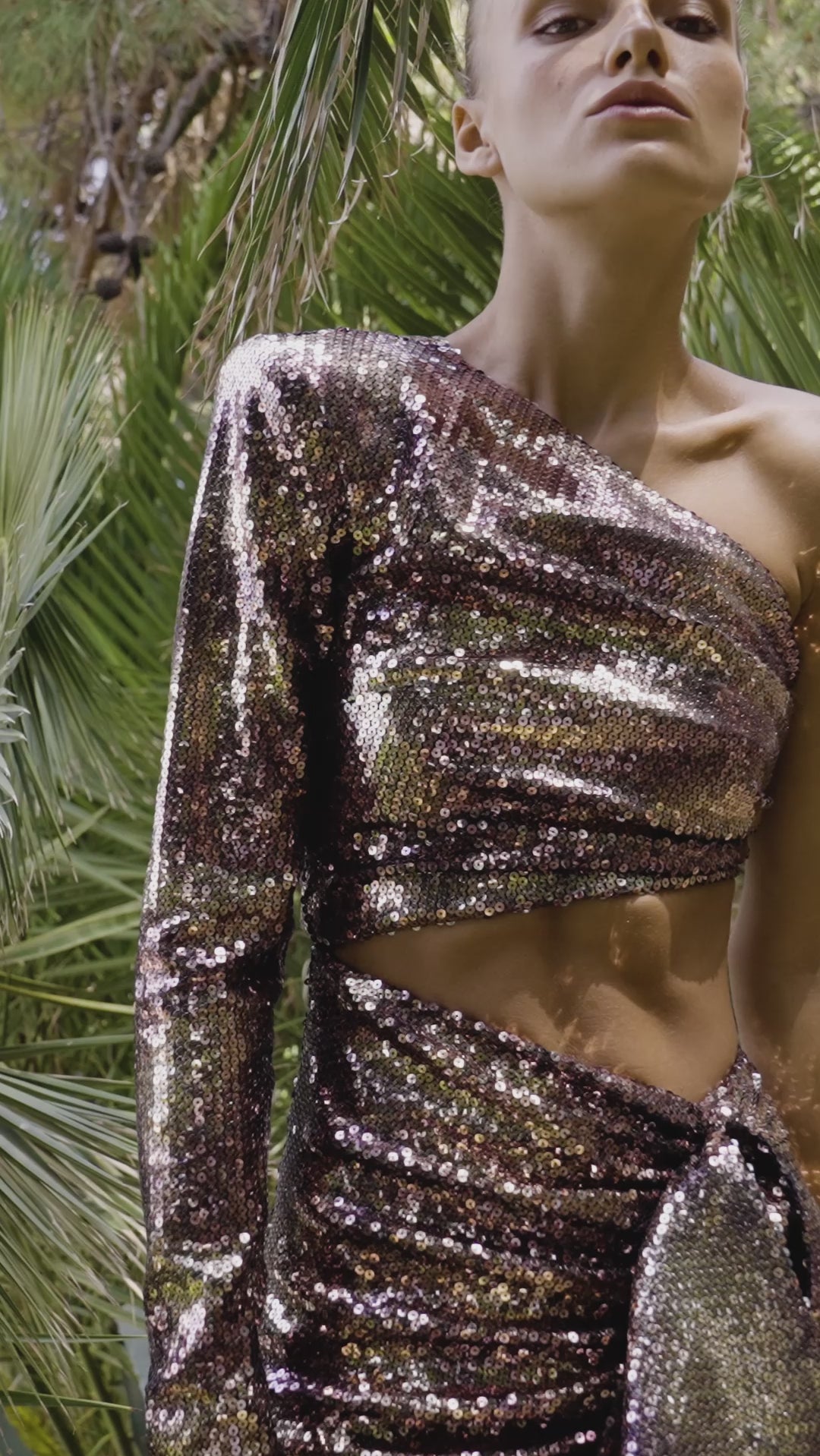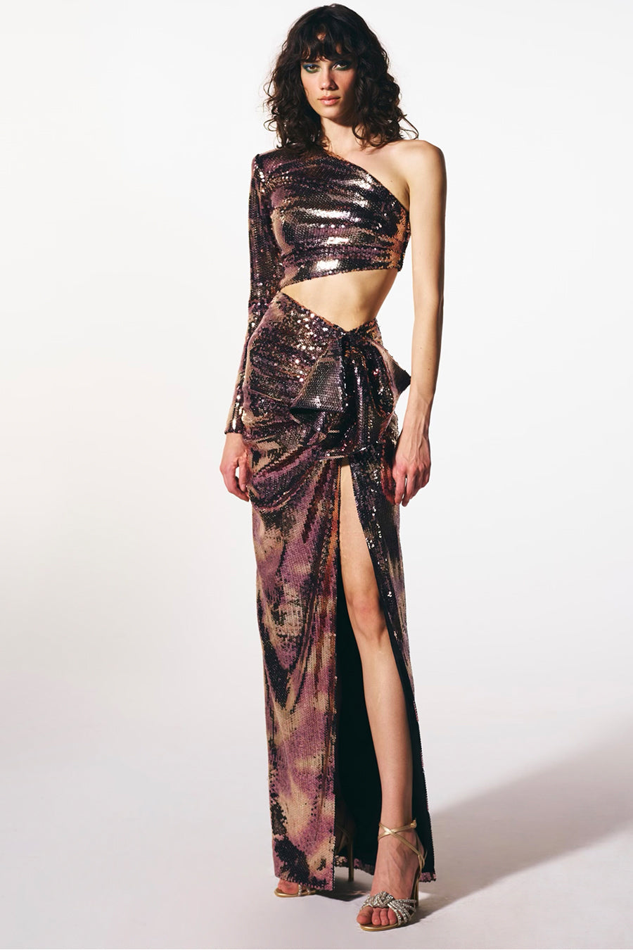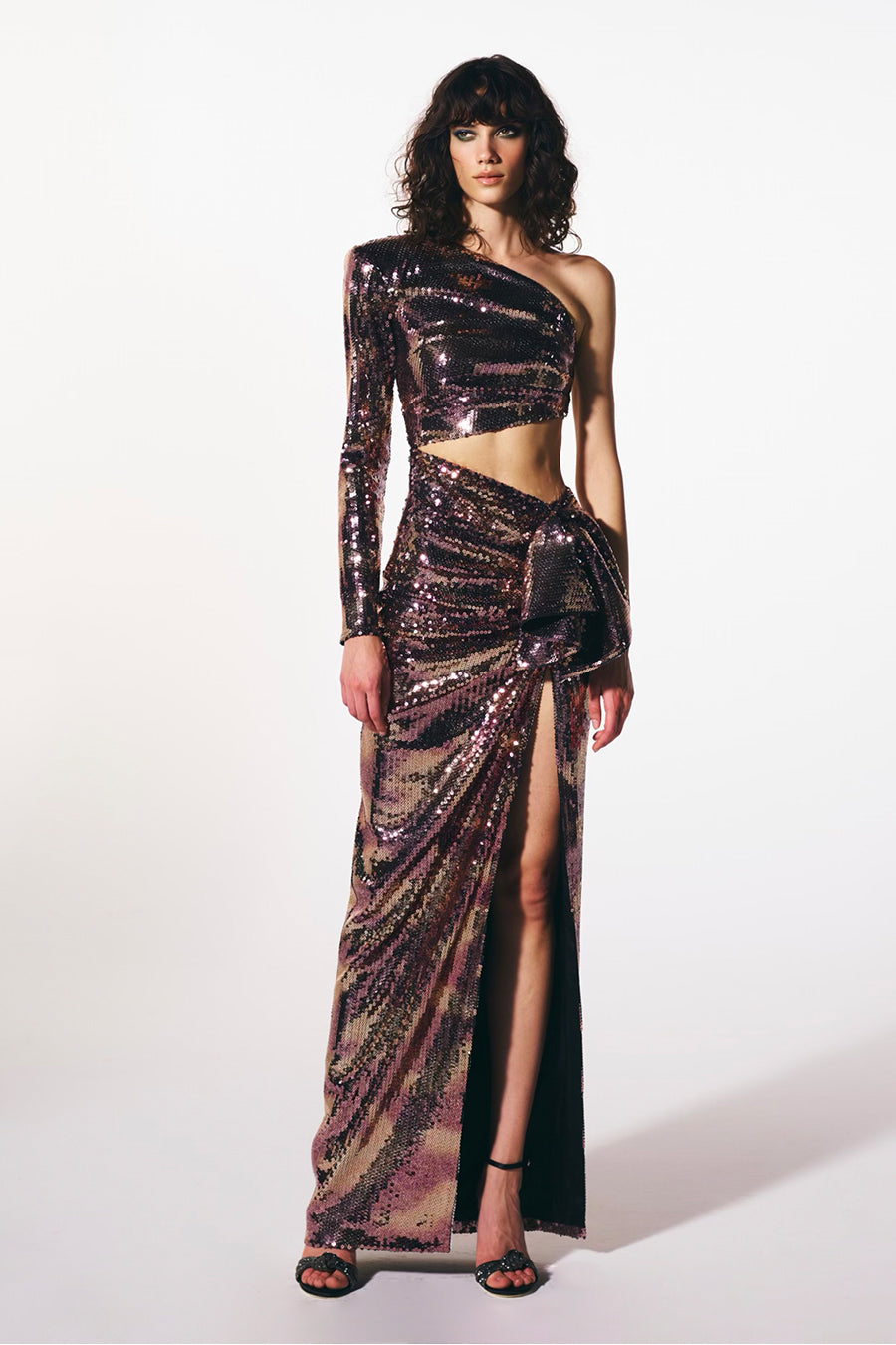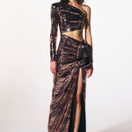 - Peplumlu payet uzun yırtmaçlı elbise