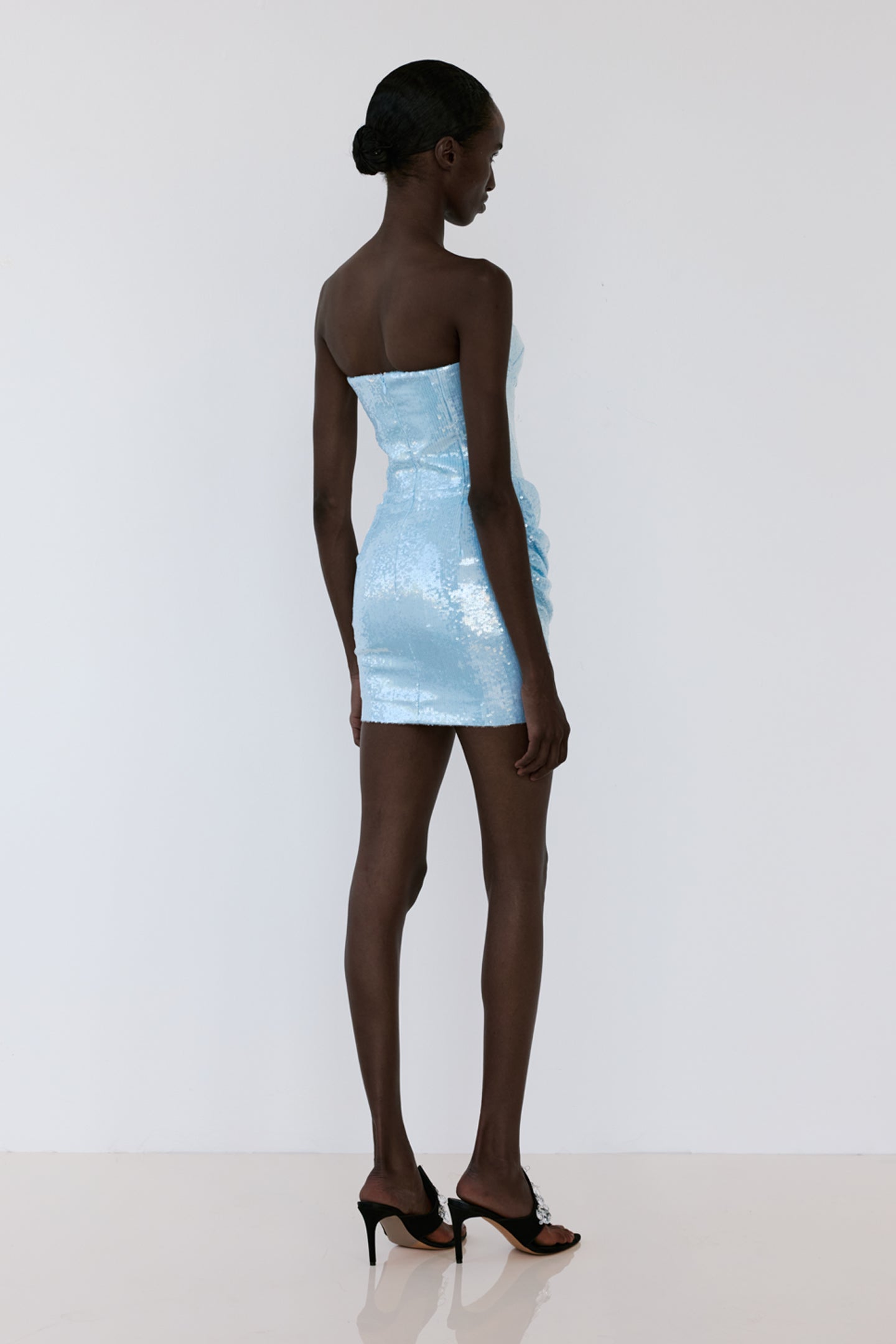 - Tüm yüzeyi payetli; korse dikişleriyle şekillendirilmiş gövde