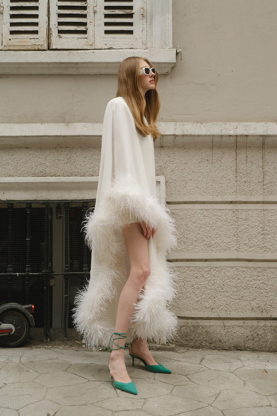 Kullanılan tüm otrişler %100 deve kuşu tüyünden üretilmektedir. Sürdürülebilir üretim taahhüdü ve faaliyetleri çerçevesinde üretilerek sertifikalı çiftliklerden temin edilmektedir. Serin ve kuru bir ortamda muhafaza edin. Sentetik olmadığı için belli miktarda dökülme yapması normaldir. Otrişler elbiseye elle dikilmiştir. Kuru temizlemeye vermeden önce otrişlerin çıkarılıp, temizlendikten sonra tekrar dikilmesi gerekmektedir.