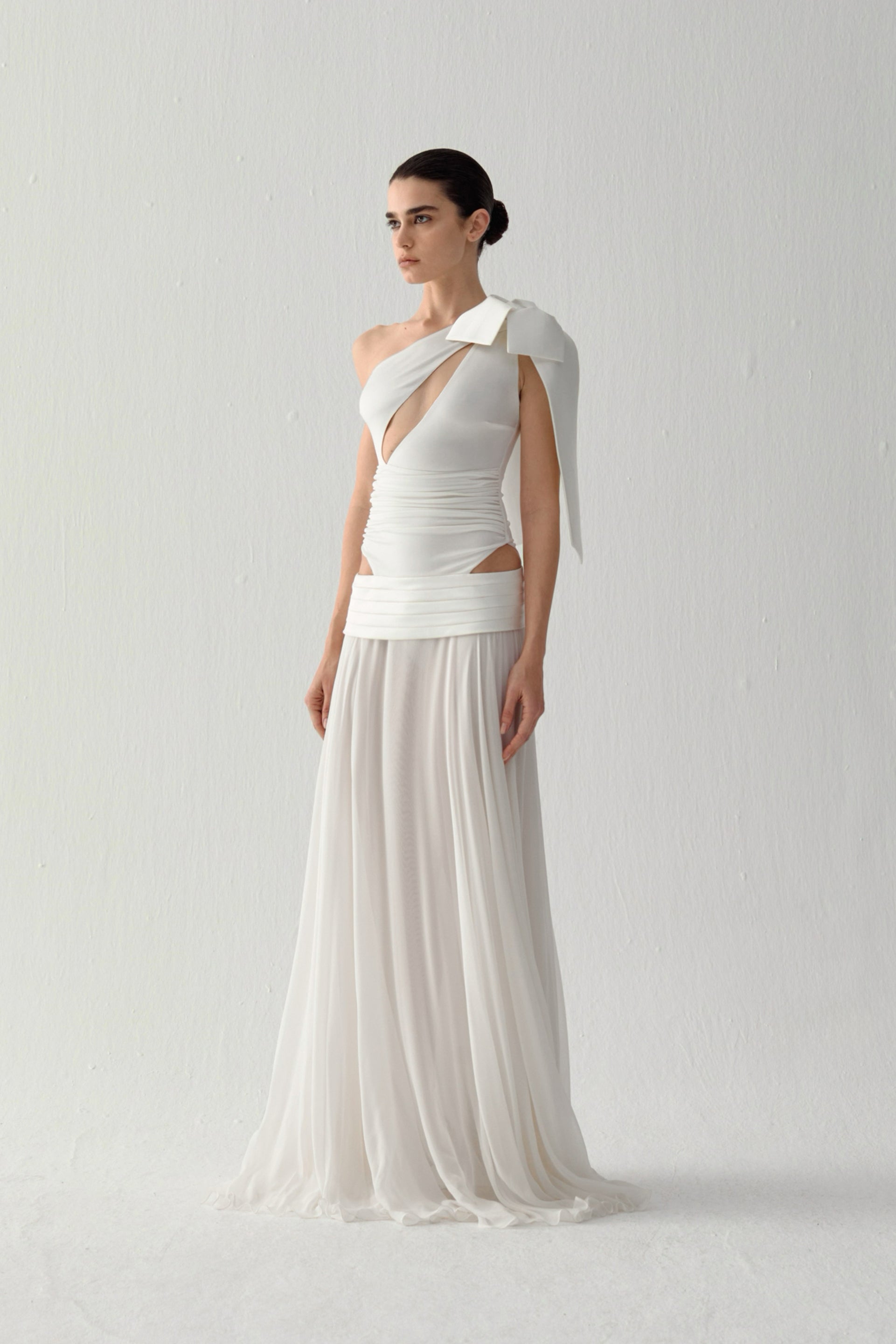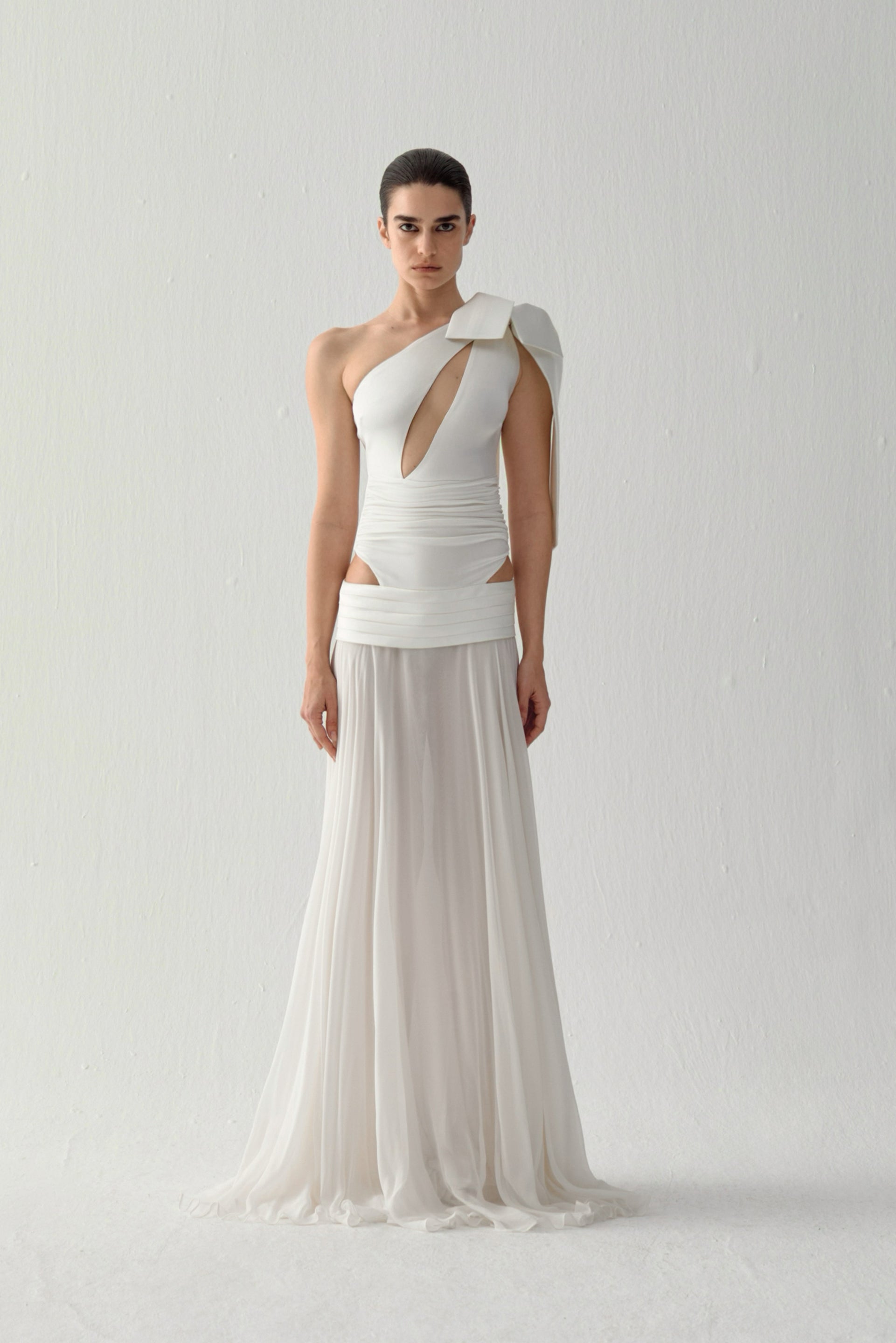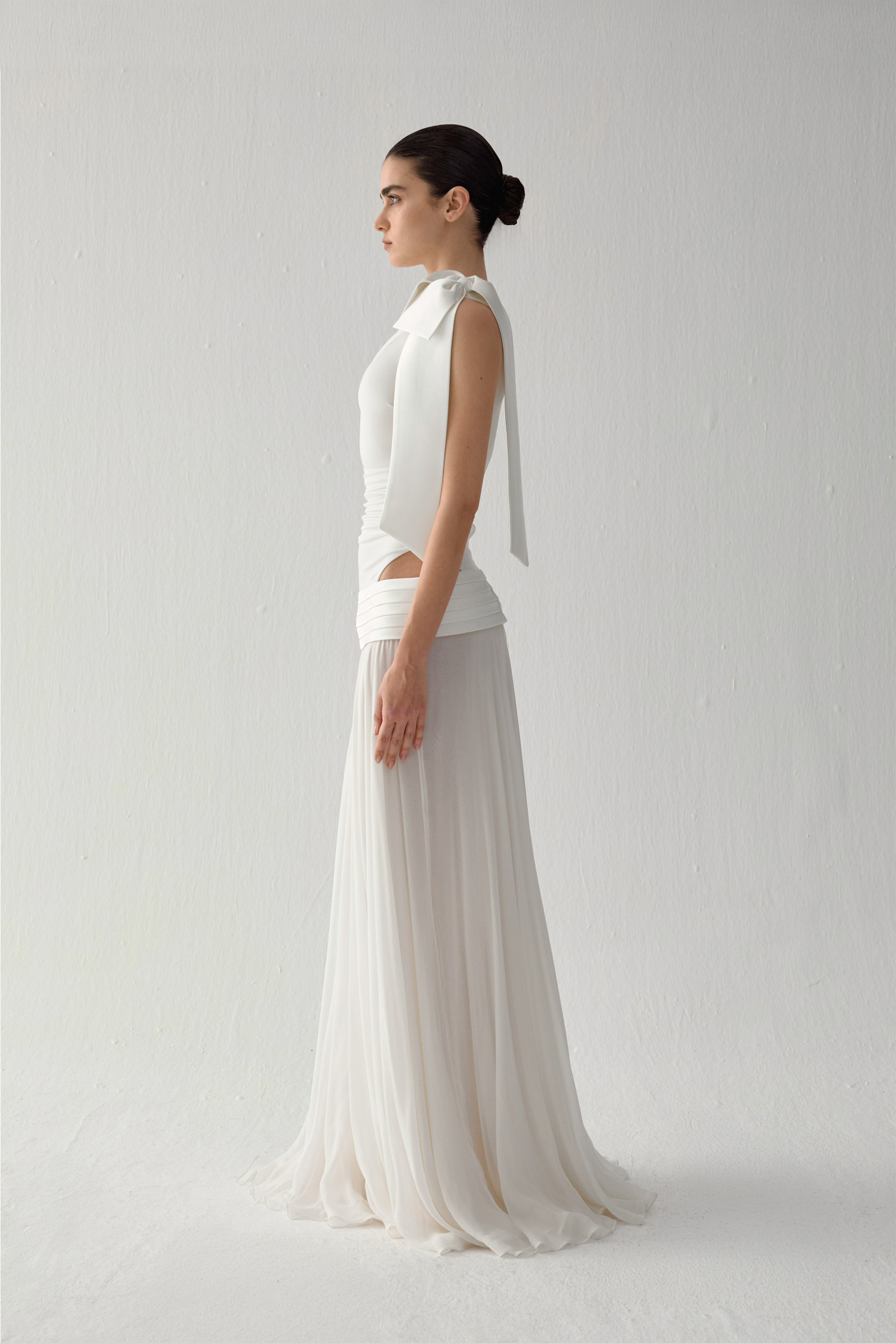 - Göğüs üzerinden saten fiyonk bant detaylı toneton gövde